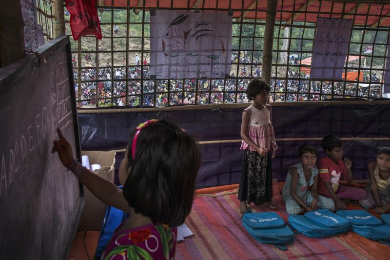 Every morning, thousands of children, with their backpacks will walk through the camps to reach the learning centers. Efforts were stepped up to set up temporary learning centers across the camps to enroll thousands of Rohingya children. This was made possible with generous funding from the King Abdullah Program (KAAP) supporting education interventions for displaced Rohingya children. While thousands of Rohingyas gather every day to collect humanitarian aid to survive in the harsh conditions of a heavily congested camp, many children found opportunities to learn in the learning centers, a respite from the incredibly difficult realities of the camps.