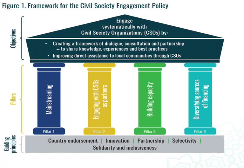 In an effort to tackle its Member Countries' challenges and In line with the Global Agenda 2030, IsDB 10-Years Strategy and the President 5-Year Program (P5P), which call for increased participation of Civil Society Organization (CSOs) as the network of developers in IsDB development interventions; the Bank has developed and approved the first-ever Civil Society Engagement Policy in February 2019. The Bank has also developed an “Operational Strategy" of the Civil Society Engagement Policy aiming at setting the strategic priorities, five year action plan, result-based framework and tools to operationalize pillars of the Policy to effectively engage with civil society as “developer-partners”.